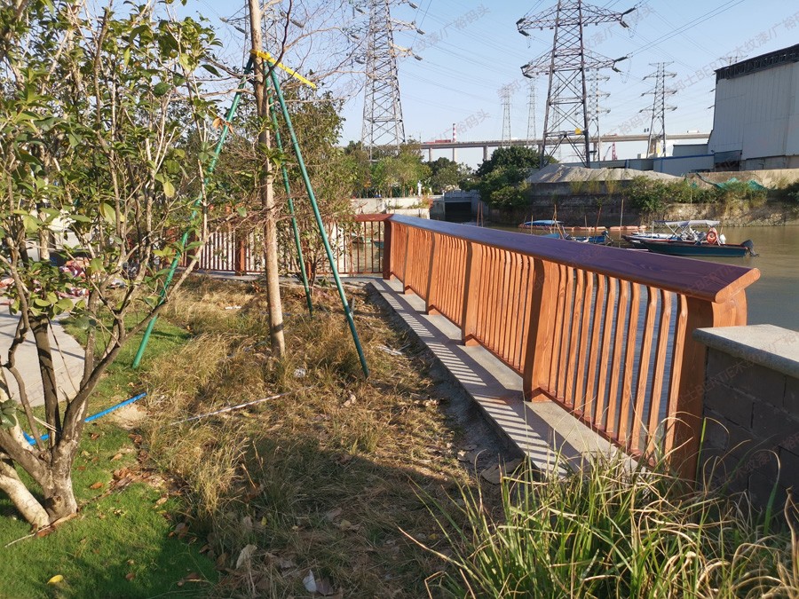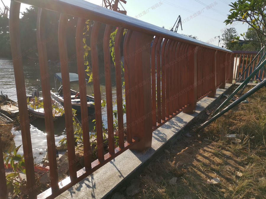 廣州黃埔廣裕碼頭鍍鋅管欄桿木紋漆