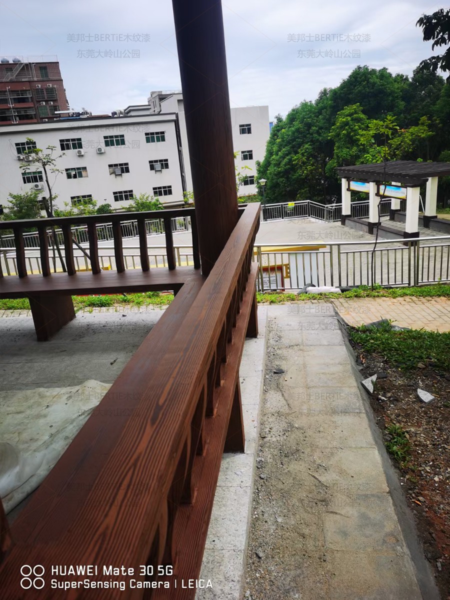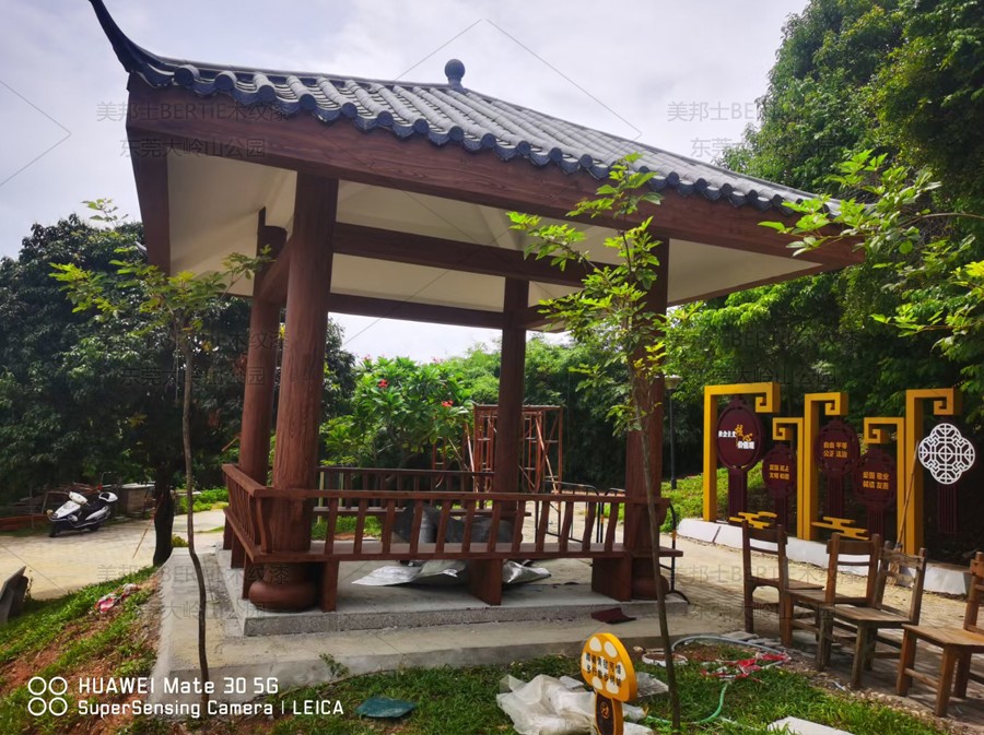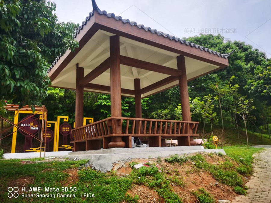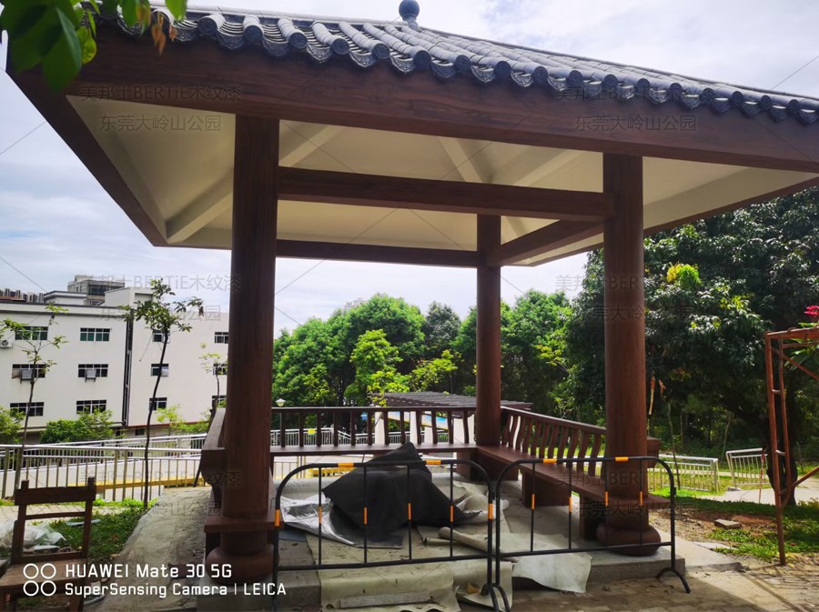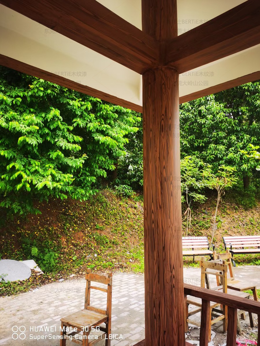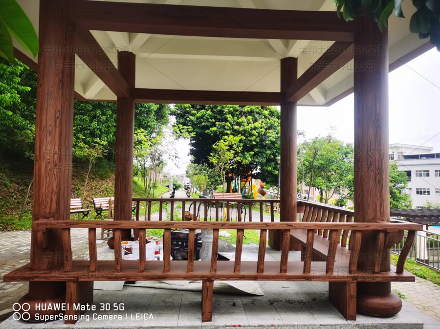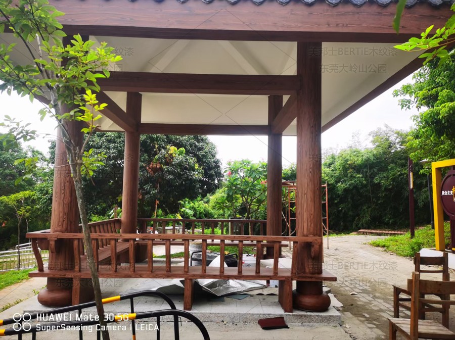 東莞大嶺山公園混凝土涼亭木紋漆